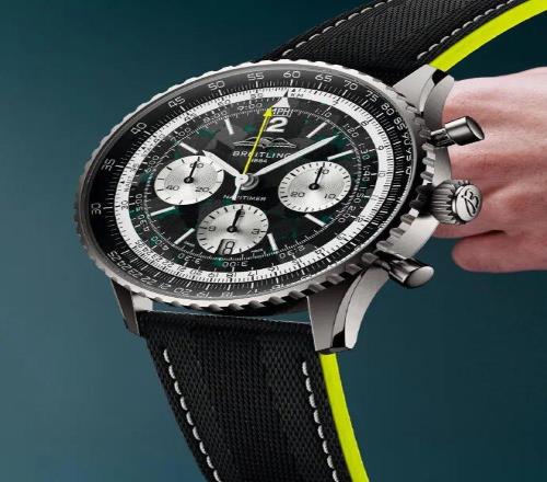 這次合作的曆史淵源後,能夠真正把這場“時間與速度”的聯盟進行詮釋的,自然還是這枚雙方聯手推出的第一款作品——航空計時B01計時碼表43 Aston Martin Aramco Formula One™ Team限量版。