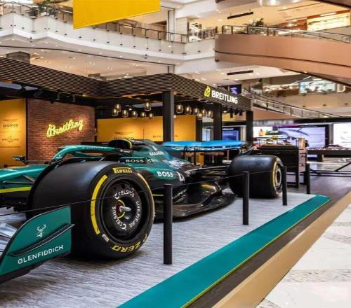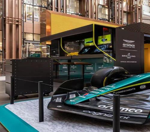 在上海南京東路的新世界新丸中心一層中庭,打造了一處名為 “F1®馭時賽道” 的限時概念空間,從3月11日持續到3月22日,讓大家都能夠進入這次品牌與阿斯頓·馬丁及 Aston Martin Aramco Formula One™ Team 的合作“零距離現場”。