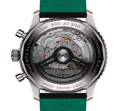翻到表背,你還能看到“One of 1959”以及“Instruments for Drivers”這些鐫刻字樣,前者給了它非常清晰的收藏屬性,後者則一下子把它從“聯名產品”拉回到百年靈的創作語境,這一件為駕駛者、為高速決策服務,堪稱“車手儀表”的工具。