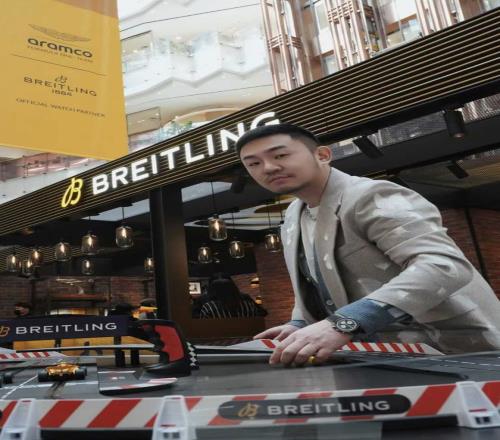 這還不是最引起尖叫聲的,當天品牌代言人黃景瑜也來到現場,將這場活動的氣氛推至高潮。他現場佩戴的,也正是這次合作推出的表款——航空計時B01計時碼表43 Aston Martin Aramco Formula One™ Team限量版。