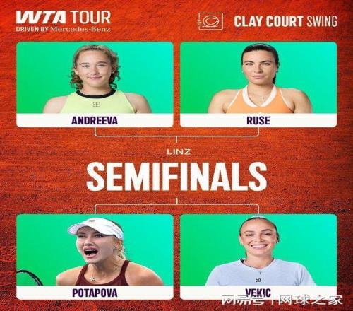 女子賽場:北京時間昨晚,WTA500林茨站結束了單打1/4決賽,頭號種子、俄羅斯新星米拉-安德列娃以7-6(4) 4-6 6-2淘汰5號種子科斯蒂亞,職業生涯第3次躋身紅土賽四強。接下來,她將和羅馬尼亞人魯塞爭奪決賽席位,後者以4-6 6-4 6-1逆轉前賽會冠軍、拉脫維亞名將奧斯塔彭科,職業生涯首進1000賽四強。
