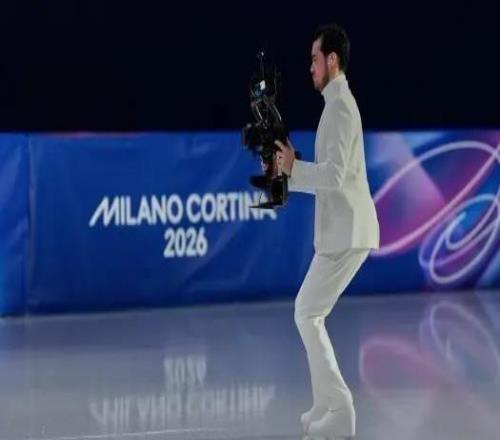 參考消息網2月19日報道 據美聯社2月17日報道,喬丹·考恩舉起相機支架,在花樣滑冰選手熱身和表演結束鞠躬時滑...